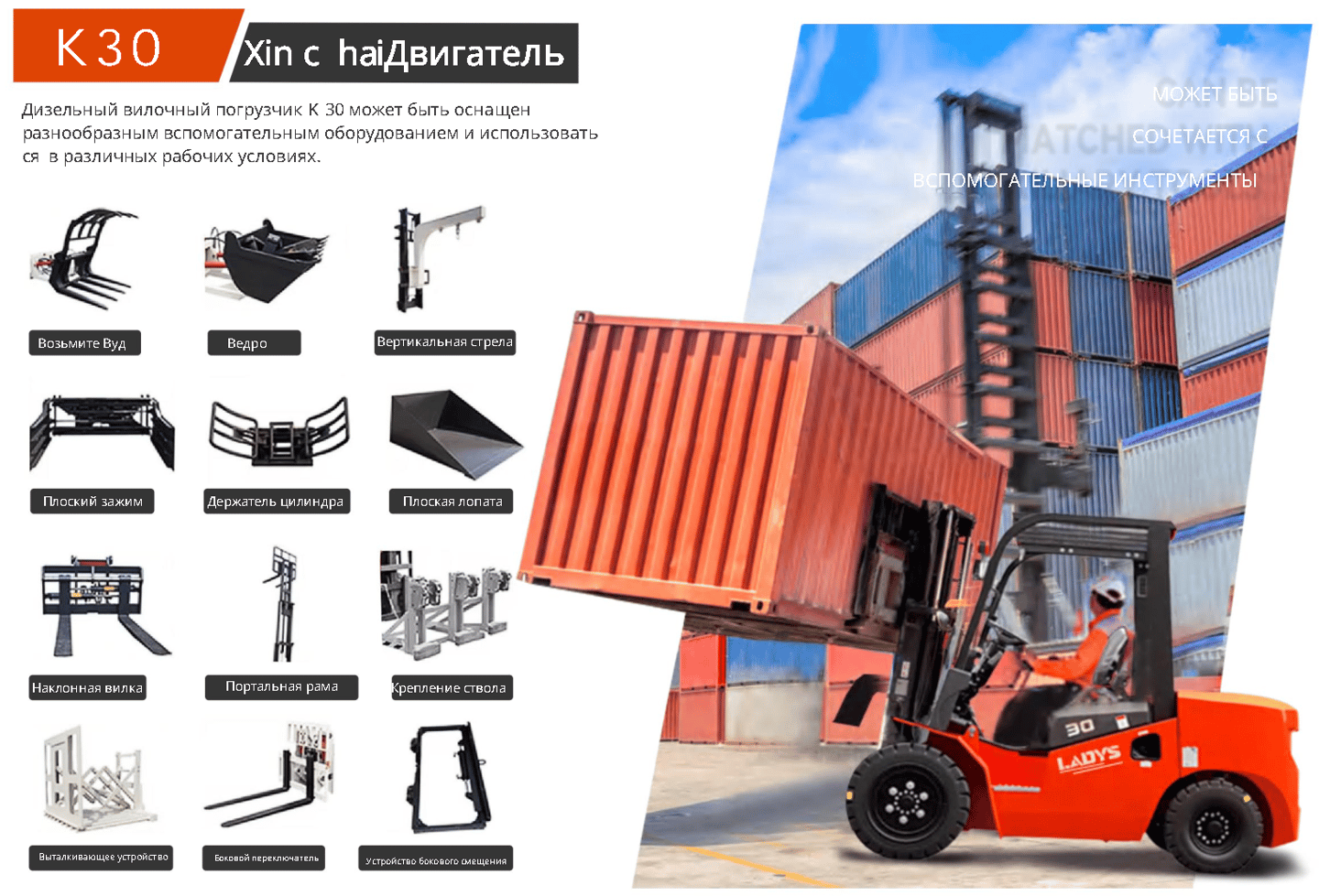 Одна машина для многократного использования, богатые детали для вилочных погрузчиков, аксессуары и навесное оборудование для вилочных погрузчиков.
